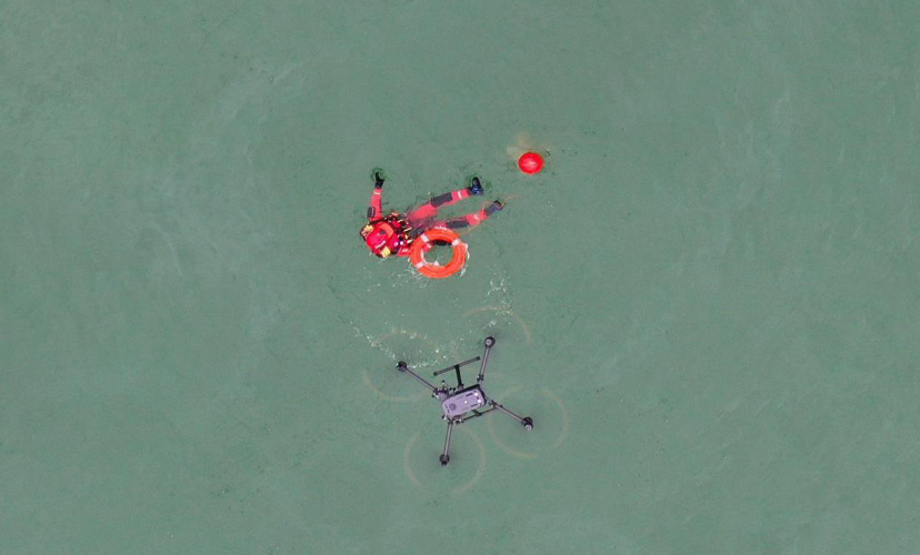 ▲無人機拋投及水面救生艇救援 攝影:毛翔春