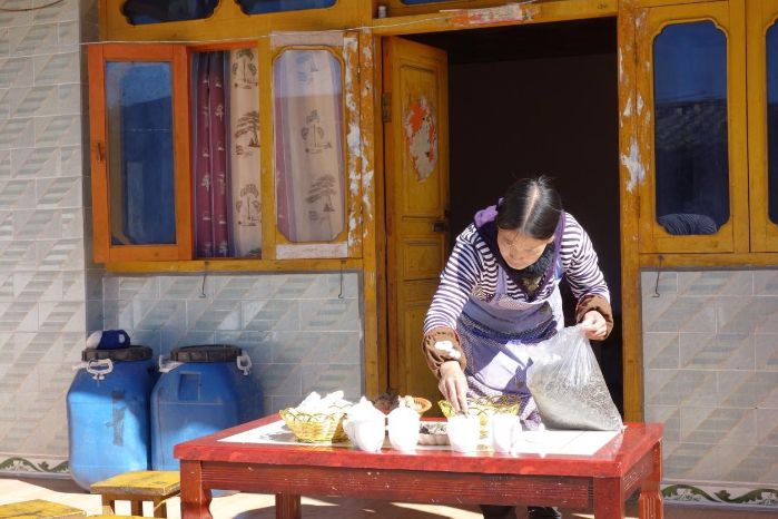 迪姑村民小組依靠鄉村旅游脫貧致富的普米族很多,普米族婦女熊文玉就是其中之一。熊文玉家有5口人,現在她家的鄉村旅游生意很紅火。熊文玉不無自豪地說:“前天,我們家來了3名廣東的自駕游客,住了3天,住普米特色民居,吃本地的土雞、黑谷、木耳等特色食品,白天觀賞攀天閣壩子風光,晚上欣賞普米民歌,他們玩得非常開心,走時留下1600元,還買了2000多元的黑谷和天麻。”