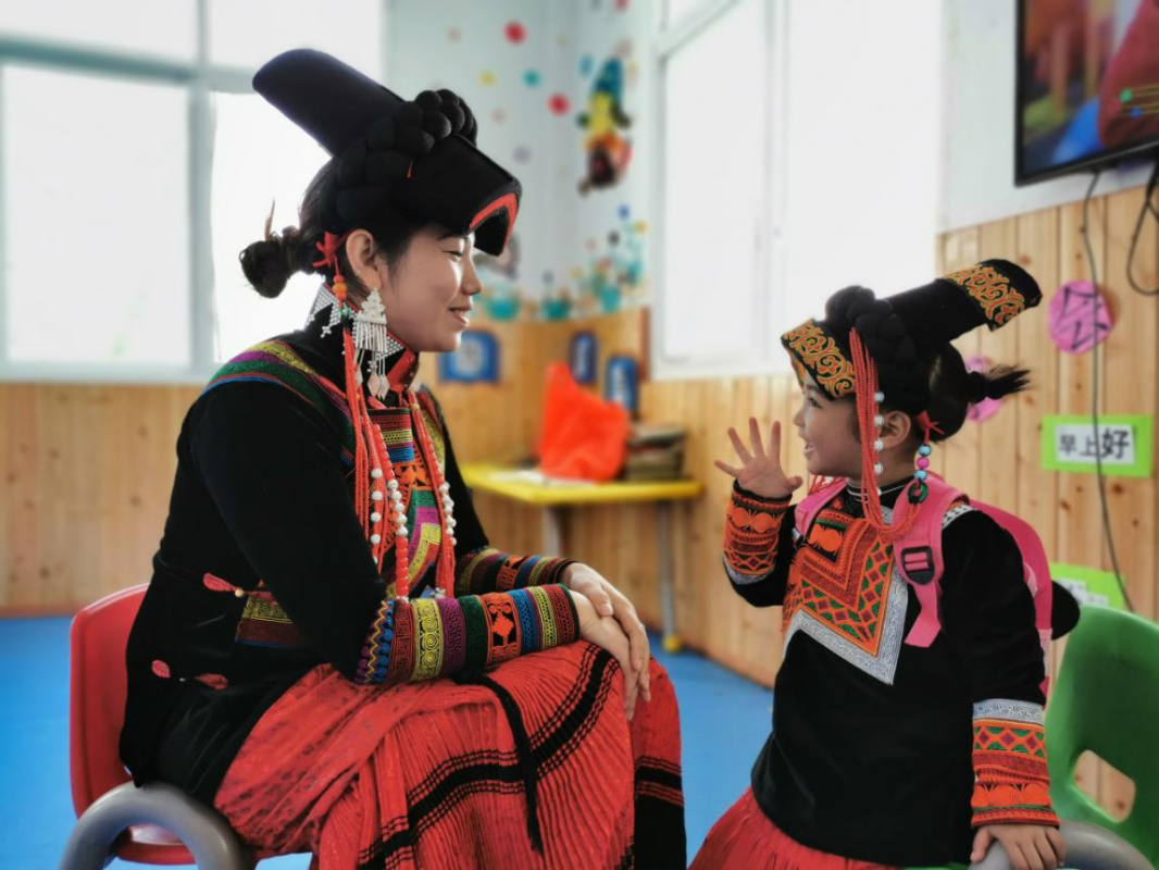 圖1 幼兒教師為彝族兒童開展普通話教學