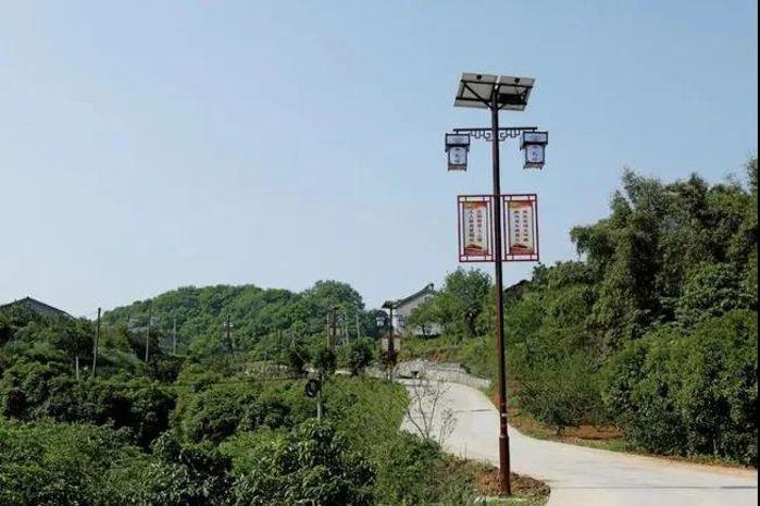 在紫陽(yáng)村主干道上,一根根白色太陽(yáng)能路燈整齊排列在道路兩旁。2017年和2019年,長(zhǎng)江電力分兩批捐贈(zèng)安裝了88盞和140盞路燈,亮化道路7.8公里,為1000余戶3000余人安全出行提供了便利。