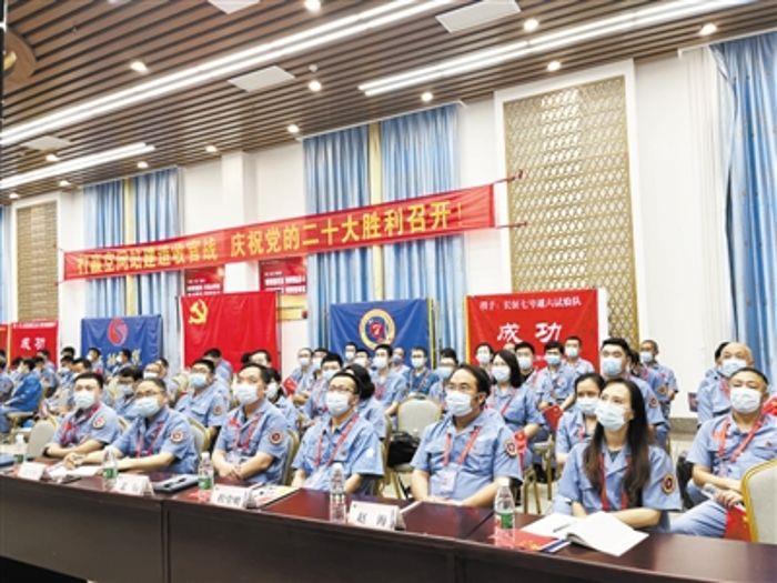 上午10時,航天科技集團一院長征五號B、長征七號、長征二號F三支火箭發射隊全體隊員各自集結,集體收看黨的二十大開幕盛況。