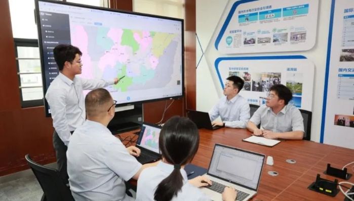▲ 三峽梯調(diào)水資源高效利用研究所正在進(jìn)行會商討論 長江電力供圖