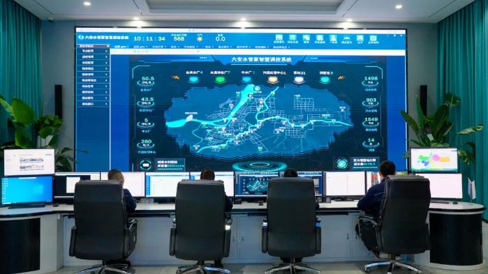 在安徽六安城北水質凈化廠里,城區的27個泵站、7個水質凈化廠、4座供水廠、5個調蓄池、1座中水廠、1座污泥處理中心,還有合計長達3950公里的供排水管網,被“濃縮”在一張數字大屏的方寸之間。“大腦”的背后,5000多個傳感器分布在城市角落,眼觀六路、耳聽八方。